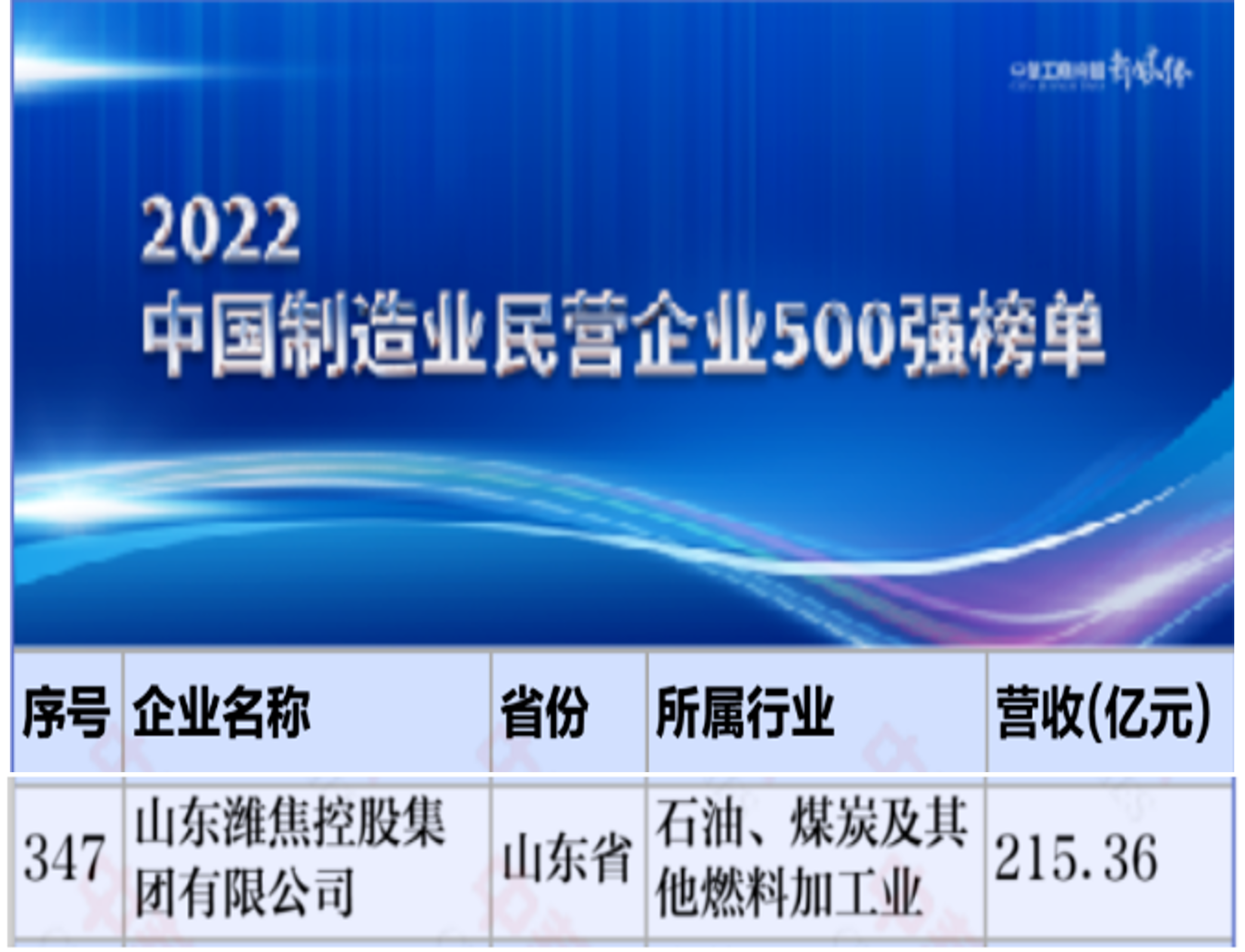 近日,2022年山東民營企業(yè)100強(qiáng)、2022年中國制造業(yè)民營企業(yè)500強(qiáng)榜單相繼發(fā)布,集團(tuán)公司再度登榜,分別位列第63位、347位。